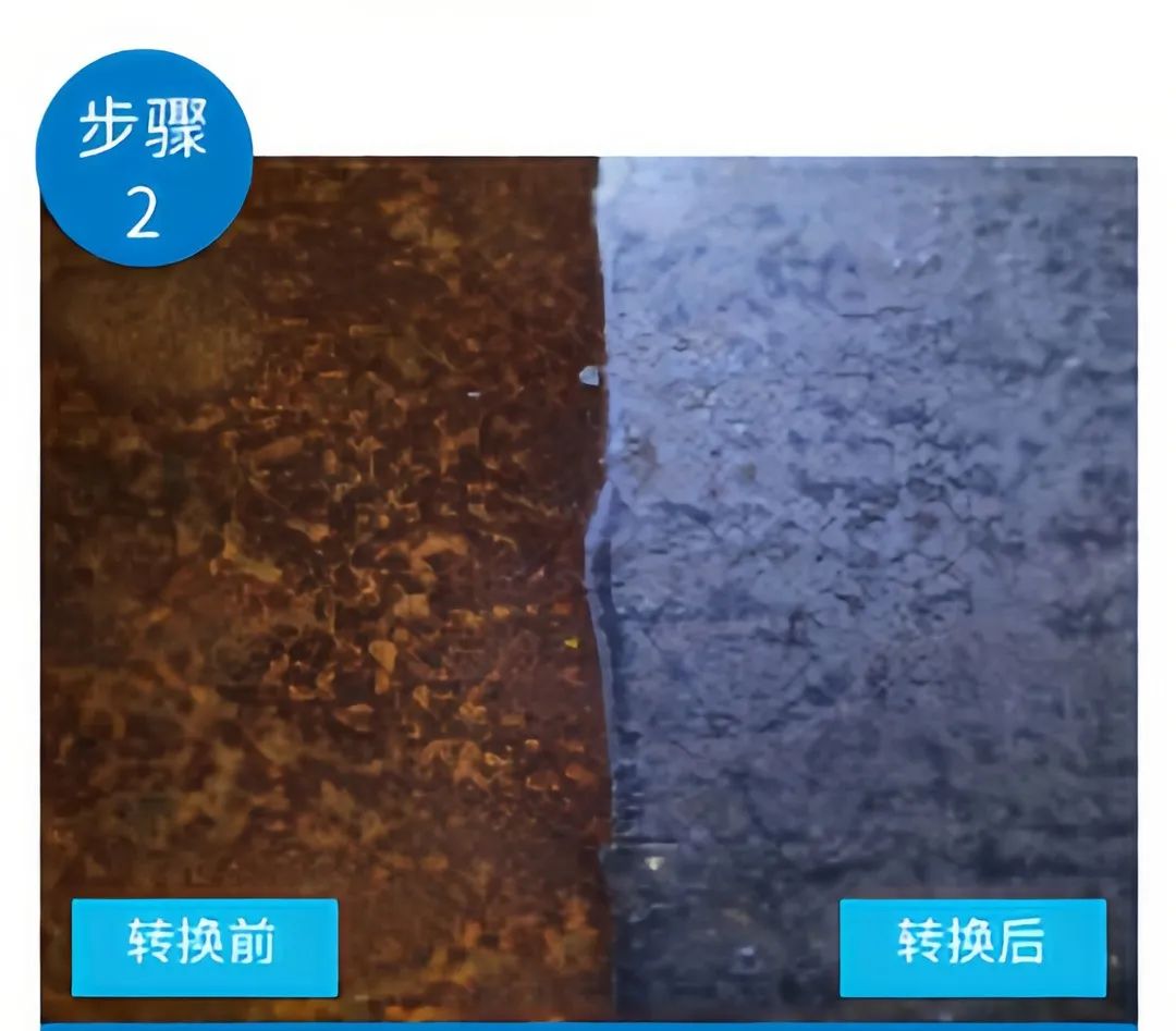 无需清除原有的锈蚀,直接在生锈的表面涂上锈蚀转化剂;或者将锈蚀转化成底漆,长期保护设备表面。